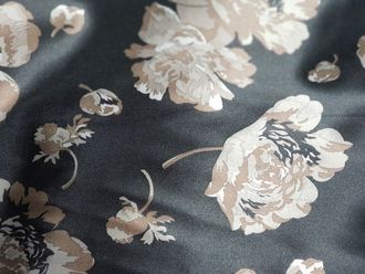 Подкладка - Бежевые Пионы на шоколадном фоне - полиэстер-антистатичный 100%